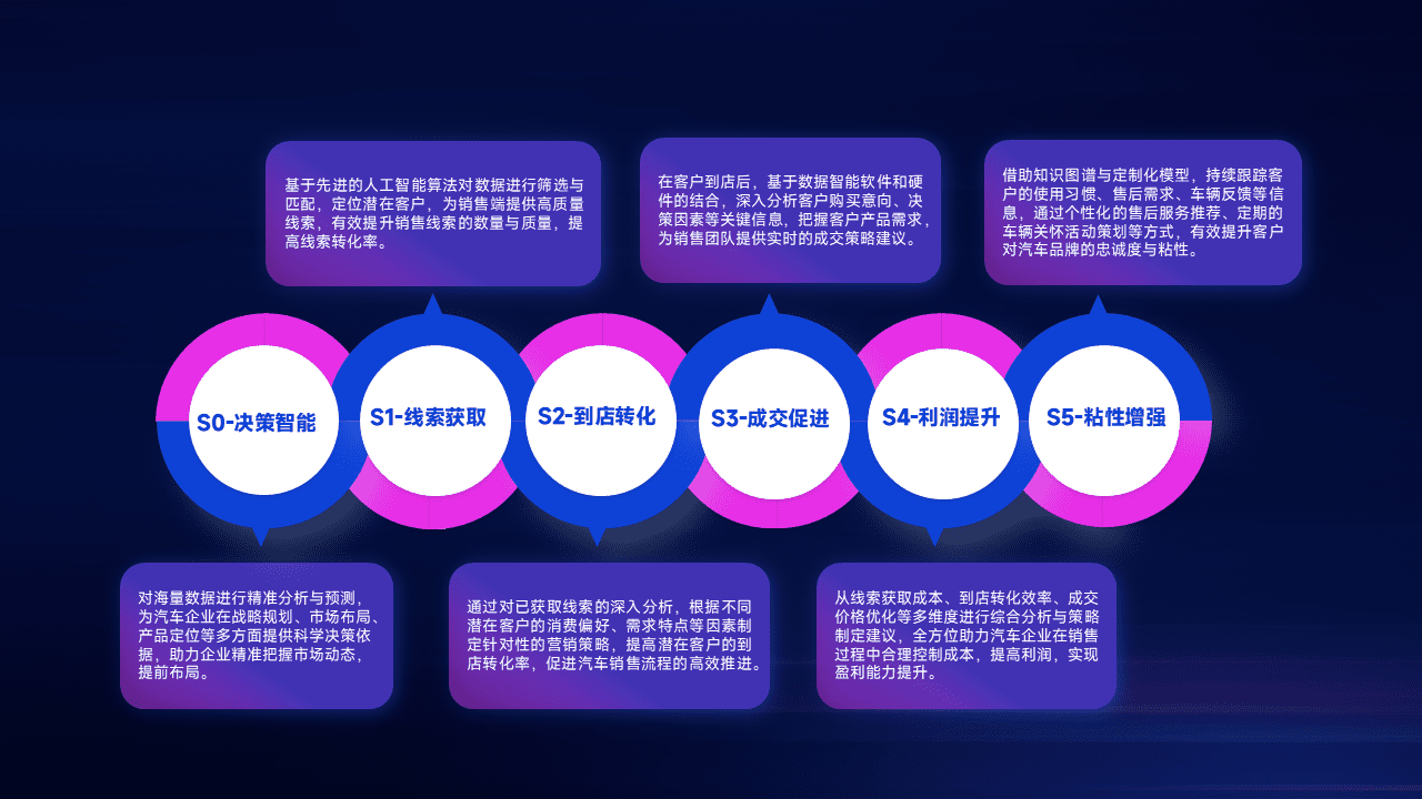 通过拓宽潜在客户来源、、、、优化线索分配并提高到店转化率,,,以增强销售效率。。同时,,,,利用线索数据不断优化分析模型,,,有效提升转化率,,扩大营销影响力。。